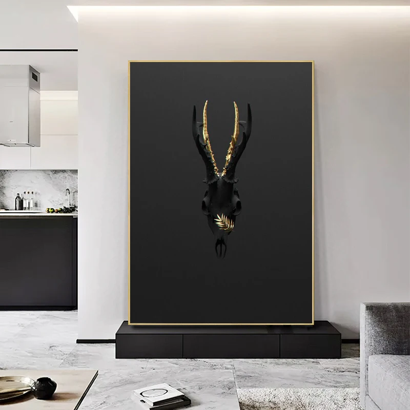 Металлическая Статуя с головой черепа быка, холст, живопись, абстра...
