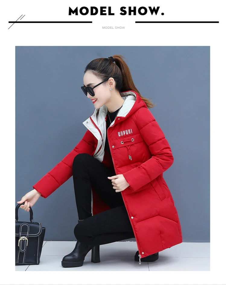 Женская куртка с капюшоном, зимняя теплая длинная куртка на молнии ...