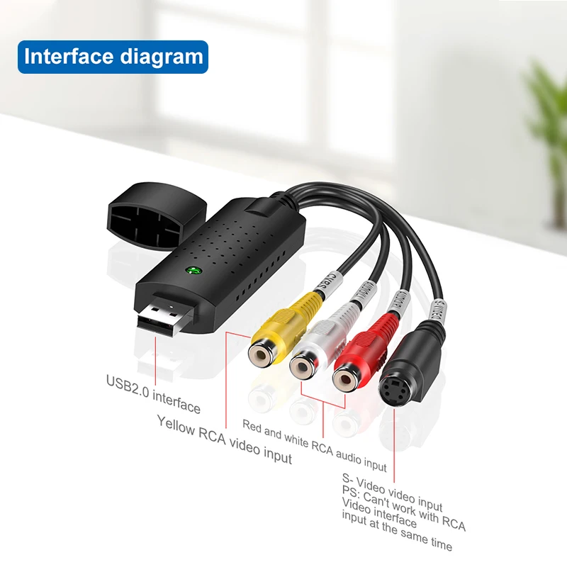 Преобразователь VHS в цифровой, USB 2,0, видеопреобразователь, карта захвата аудио, VHS Box VHS VCR TV в цифровой конвертер с поддержкой Win 7810