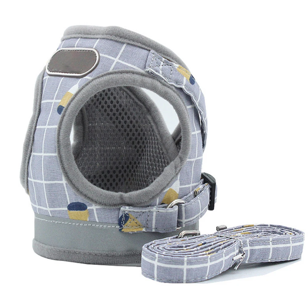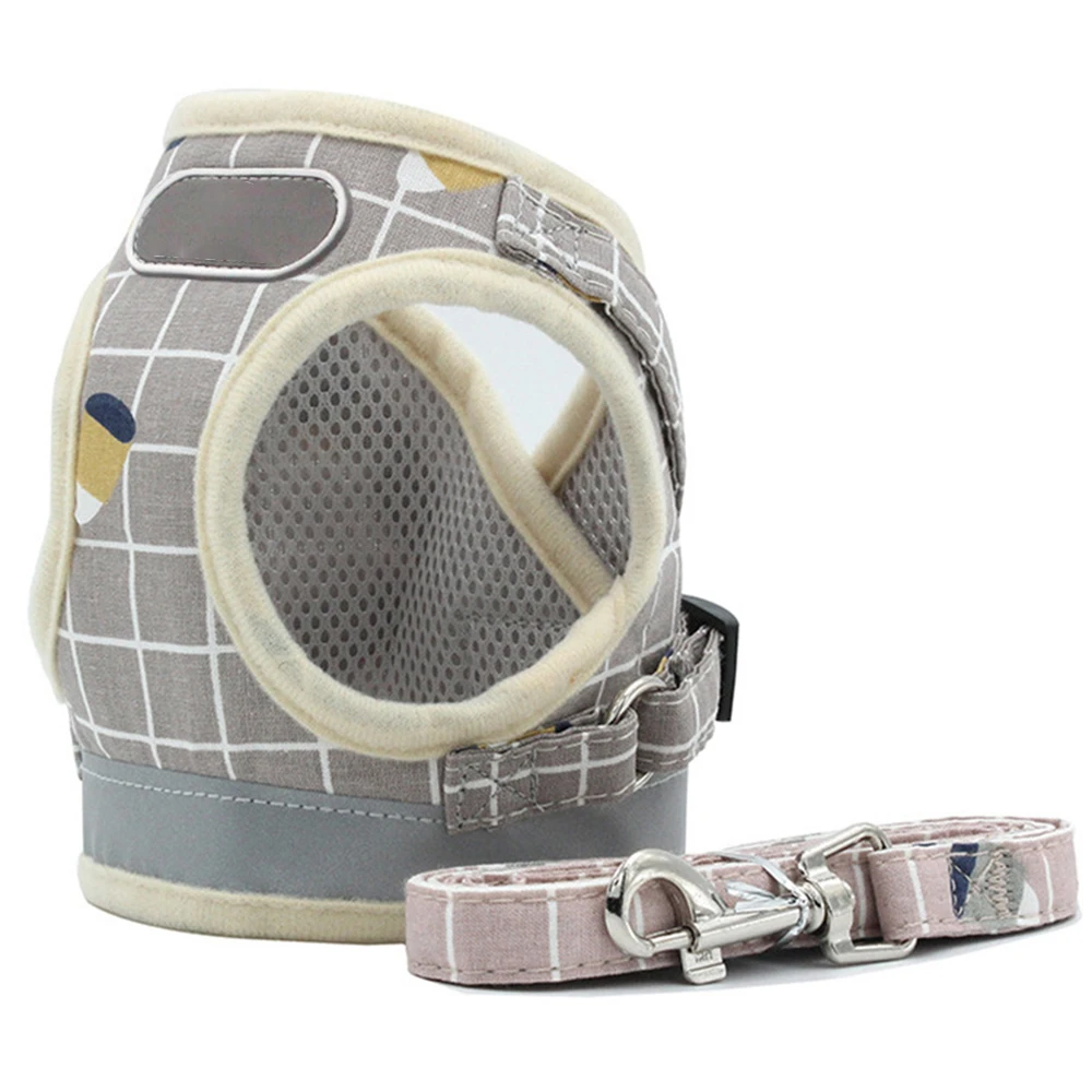 Шлейка для маленьких и средних собак, светоотражающая дышащая нагрудная шлейка в клетку, Тедди, Бишон, шлейка для собаки, жилет с принтом
