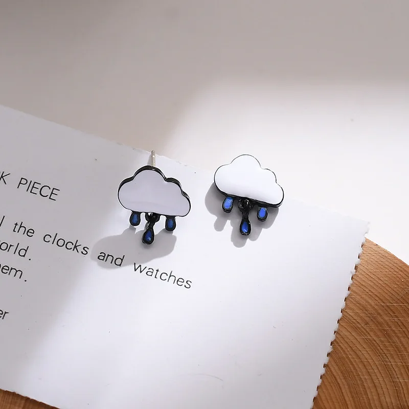 Милые серьги-клипсы в Корейском стиле с облаками и каплями дождя женские простые маленькие Клипсы-клипсы в форме облака без проколов для девочек и детей