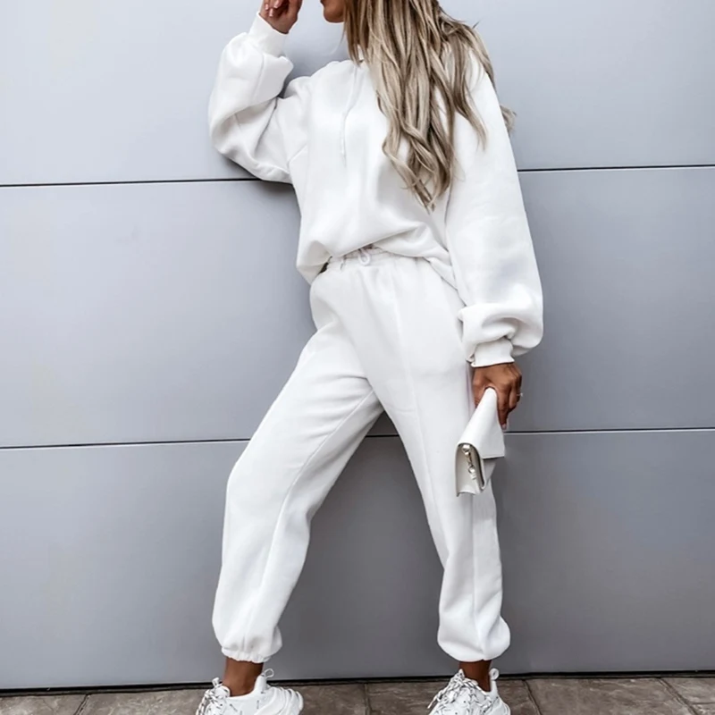 Спортивный костюм женский из двух предметов, флисовая толстовка с капюшоном и брюки на шнуровке, повседневный спортивный костюм, весна-осень 2021