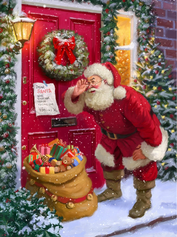 Набор для алмазной вышивки 5D "Снежный пейзаж", "Дед Мороз", стразы...