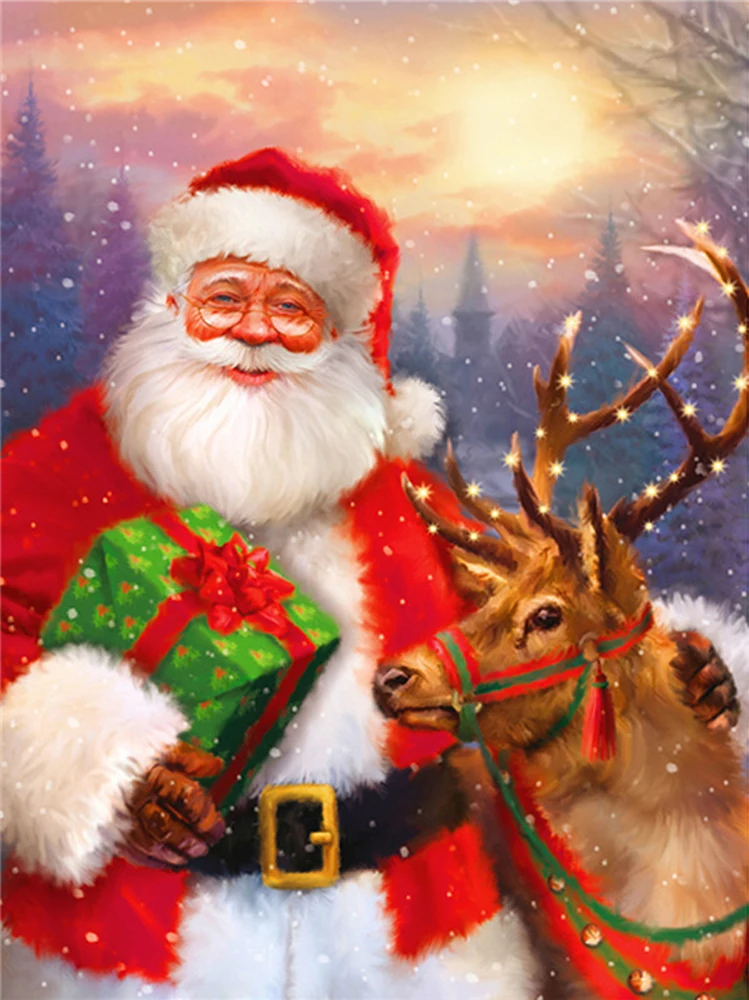 Алмазная 5D картина сделай сам, вышивка с Санта-Клаусом, оленем, зи...