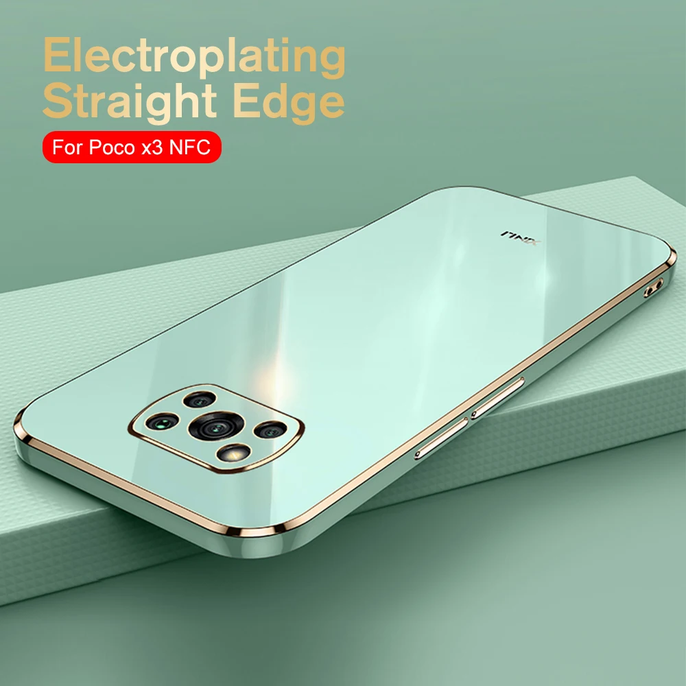 Гальванический противоударный защитный чехол с прямыми краями для Xiaomi Poco X3 Pro, Ультратонкий чехол-подставка Pocco X3 NFC X 3 X3, чехол
