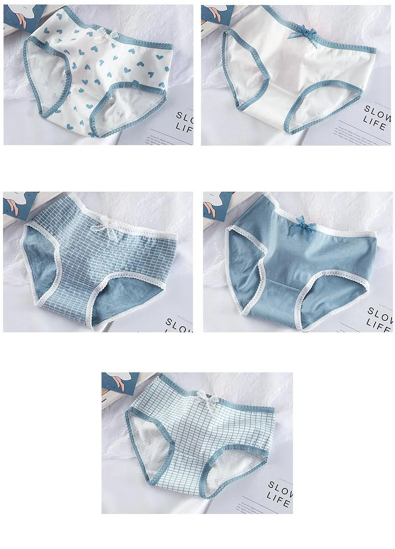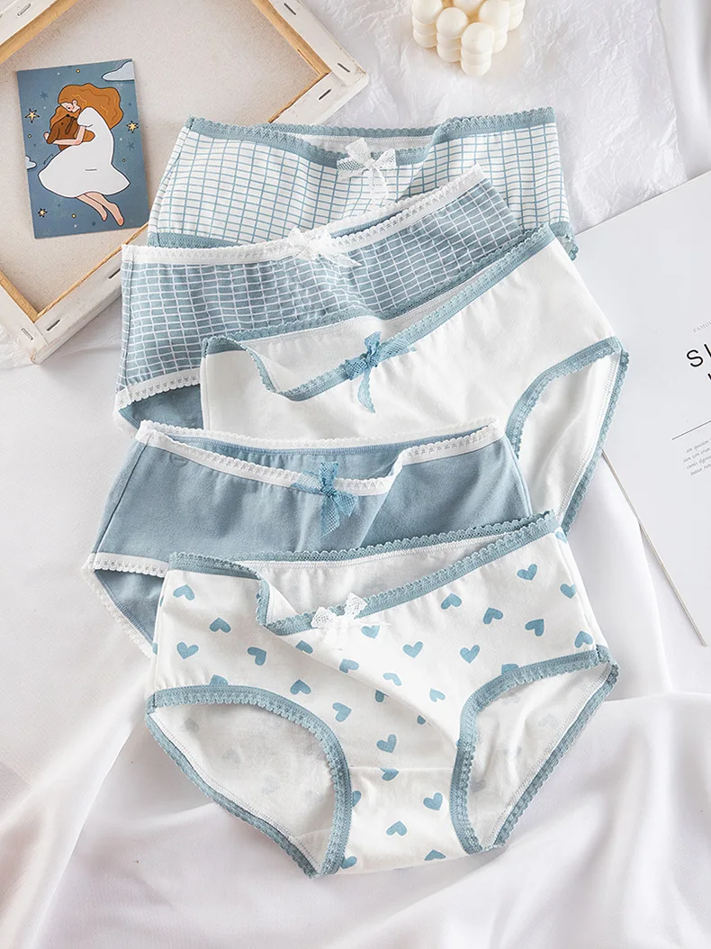 Хлопковые трусики 5 шт.лот, Симпатичные синие сетчатые трусики для влюбленных девочек, сексуальное женское нижнее белье, мягкое дышащее нижнее белье, трусики больших размеров