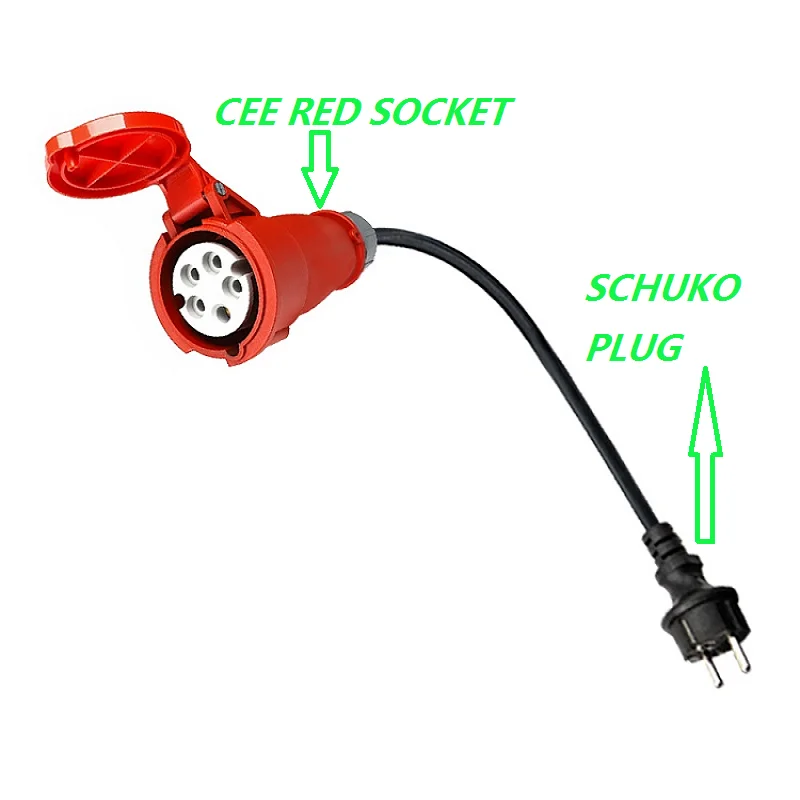 Штепсельная Вилка Schuko для Cee, красная розетка с 5 отверстиями, адаптер для подключения к 16 А, 3 фазы, 11 кВт, для EV, красная Вилка питания, 1 м кабель