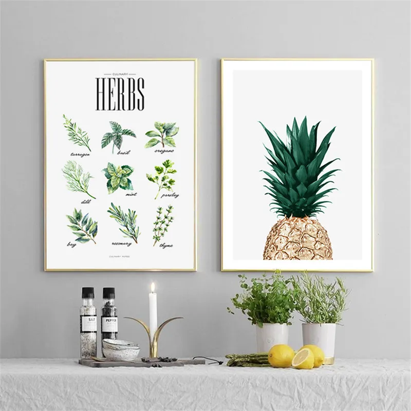 Скандинавская Минималистичная картина в виде ананаса на холсте с принтом овощей трав плакаты настенные картины для столовой домашний декор