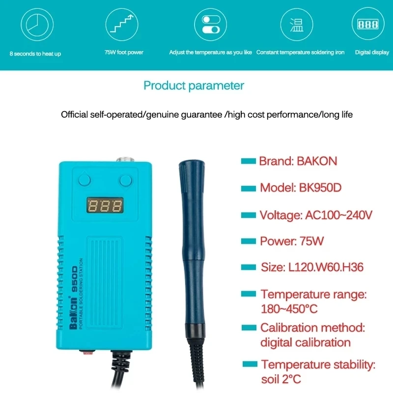 Электрический паяльник BK950D, 75 Вт, портативная цифровая паяльная станция, портативный электрический наконечник паяльника T13