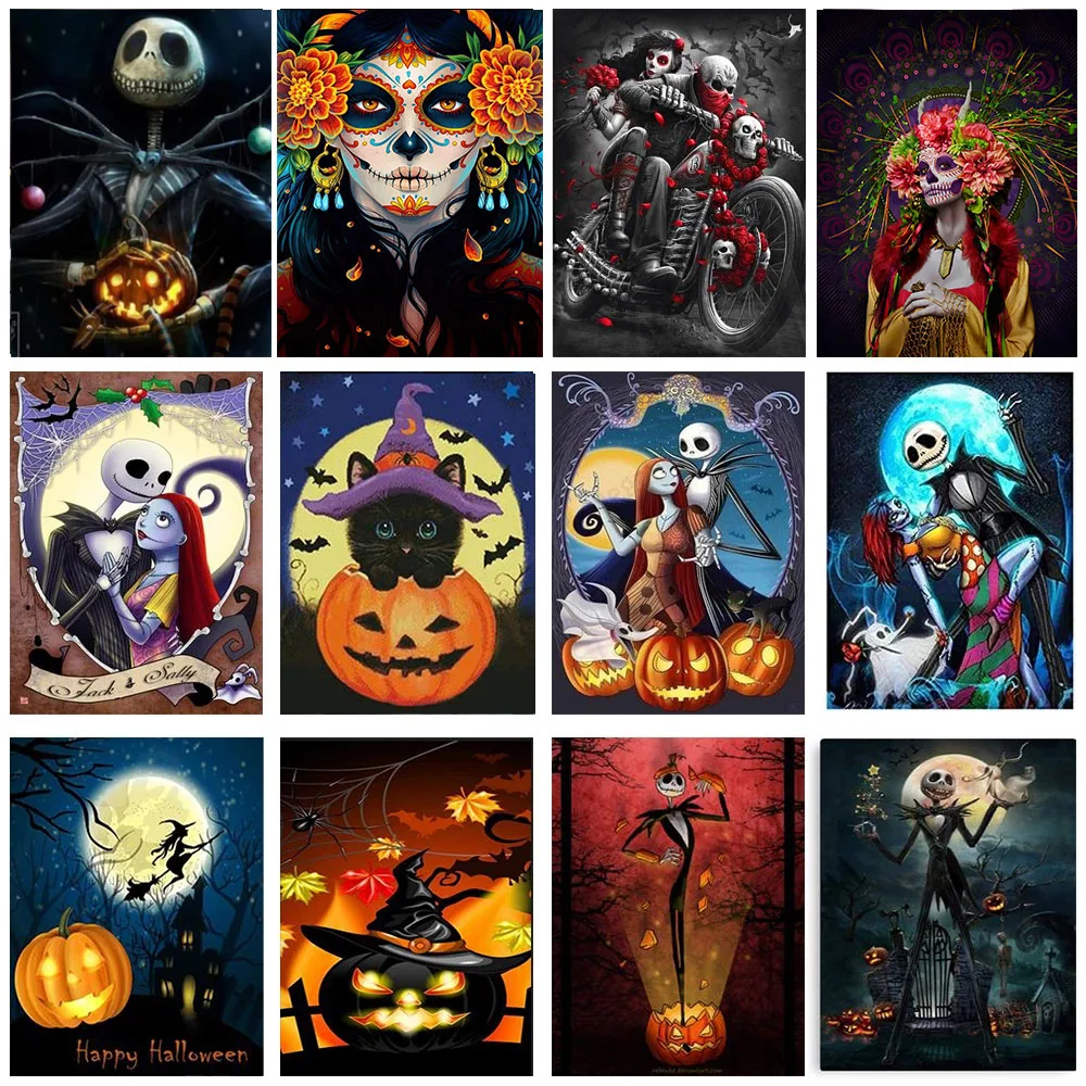Хэллоуин Череп DIY Алмазная картина Хэллоуин полная круглая Алмазная вышивка крестиком Тыква Стразы картина домашний декор