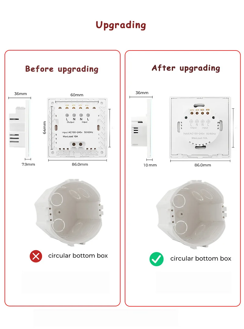 Умный настенный выключатель с нейтральным проводом UK, 10 А, со ста...