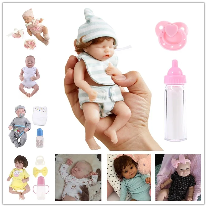 Кукла-реборн:Примерные размеры куклы. 15 см/6 дюймов, с мягким телом и настоящим прикосновением, закрытыми глазами с красивыми вьющимися волосами, яркой реалистичной игрушкой, хорошо стимулирует ребенка на ощупь и взаимодействует с настоящим ребенком.