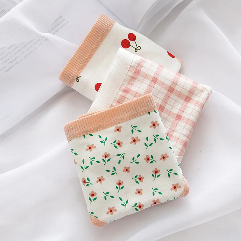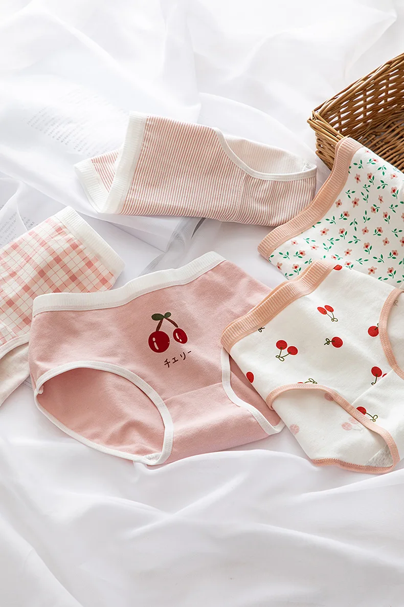 5 шт.лот 2021 женское хлопковое нижнее белье Симпатичные трусики для девочек с цветочным принтом вишни модные трусы со средней талией женское сексуальное нижнее белье
