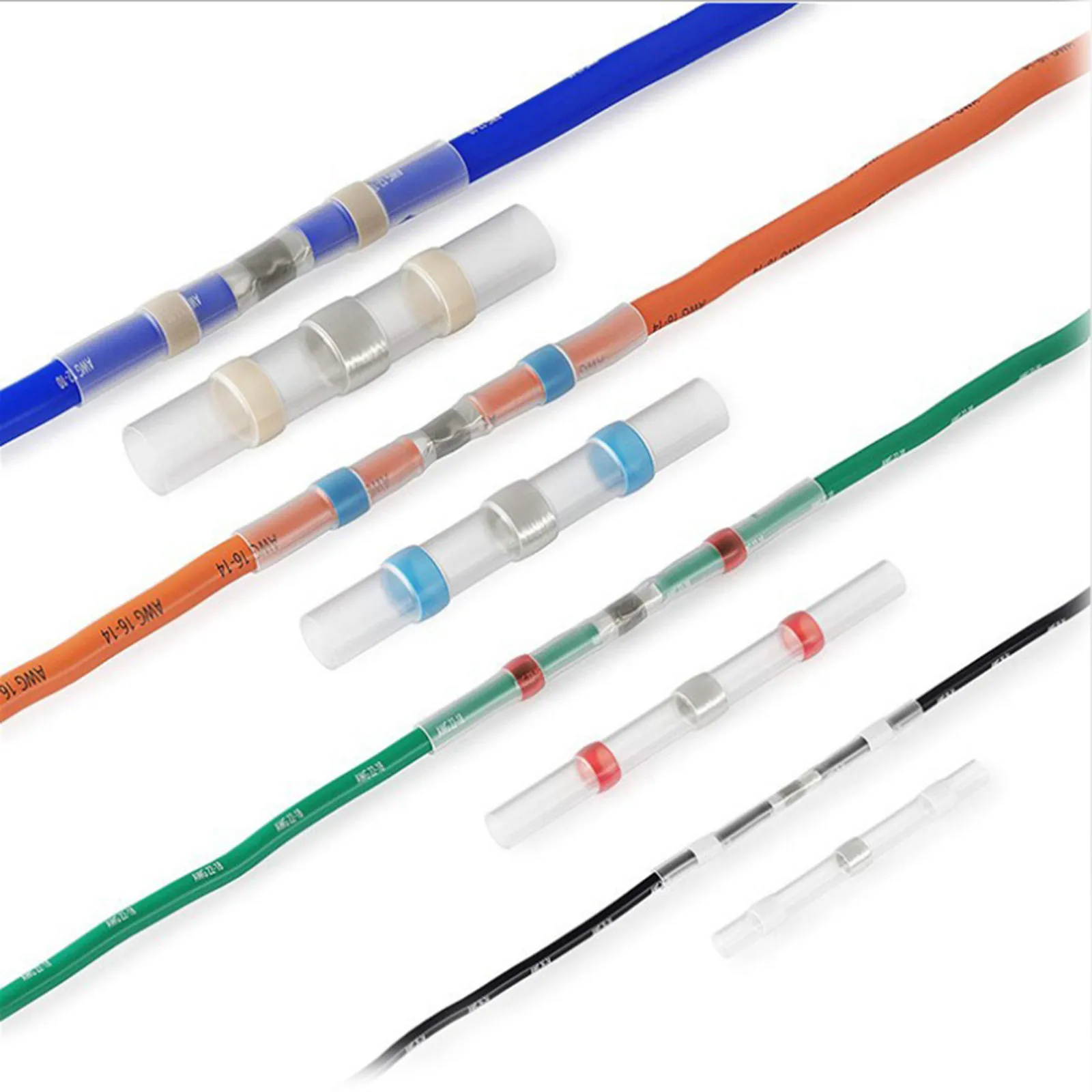 Соединители для проводов с самоприпоем, термоусадочные стыковые соединители, паяльная втулка, водонепроницаемые изолированные клеммы для проводов