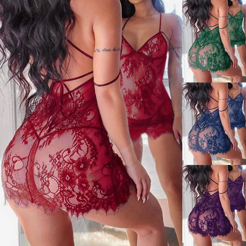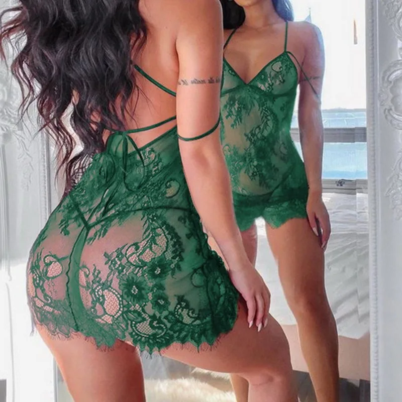 2021 ночное белье женское сексуальное нижнее белье комплект включает кружевное цельное платье с V-образным вырезом и стринги-хороший выбор нижнего белья