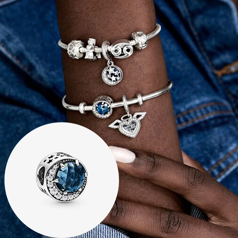Классические бусины с голубым океаническим сердцем для женщин, серебро 925 пробы бусина для изготовления украшений пробы, оригинальные браслеты с подвесками Pandora, подарки на день рождения «сделай сам»