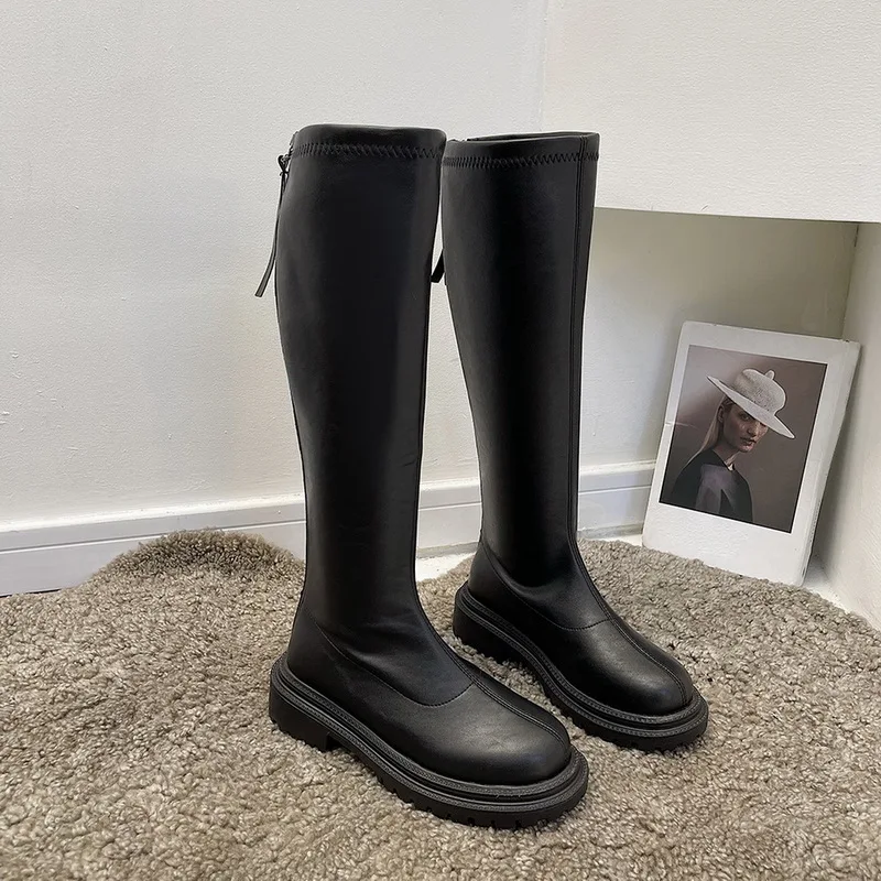 Ботинки женские высокие на платформе, приталенные рыцарские сапоги ...