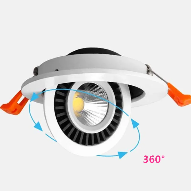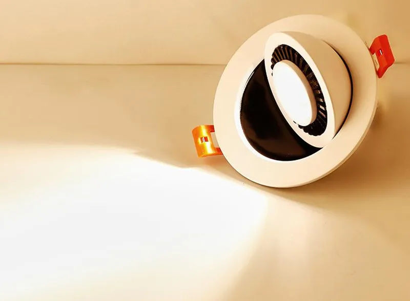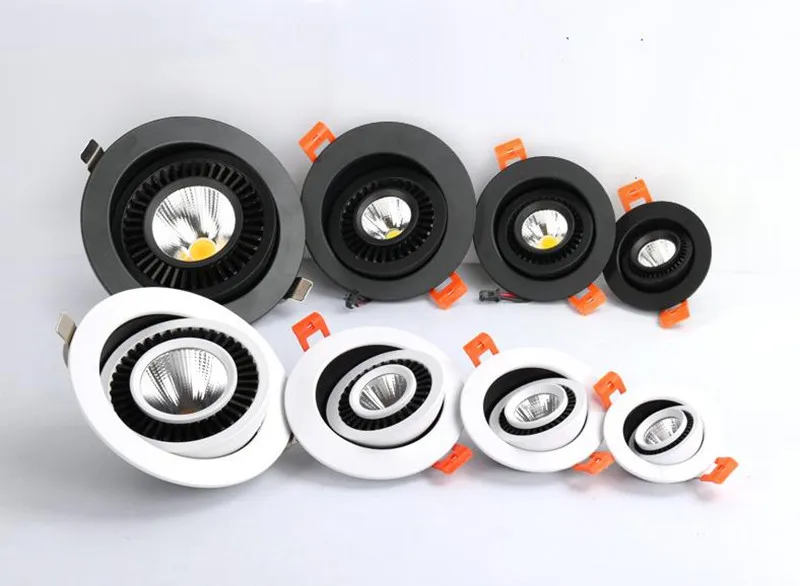 Круглая форма, 360 градусов, регулируемый светодиодный светильник 9 Вт, 12 Вт, 15 Вт, COB, встраиваемый Точечный светильник черногобелого цвета, потолочный светильник, фоновая фотография