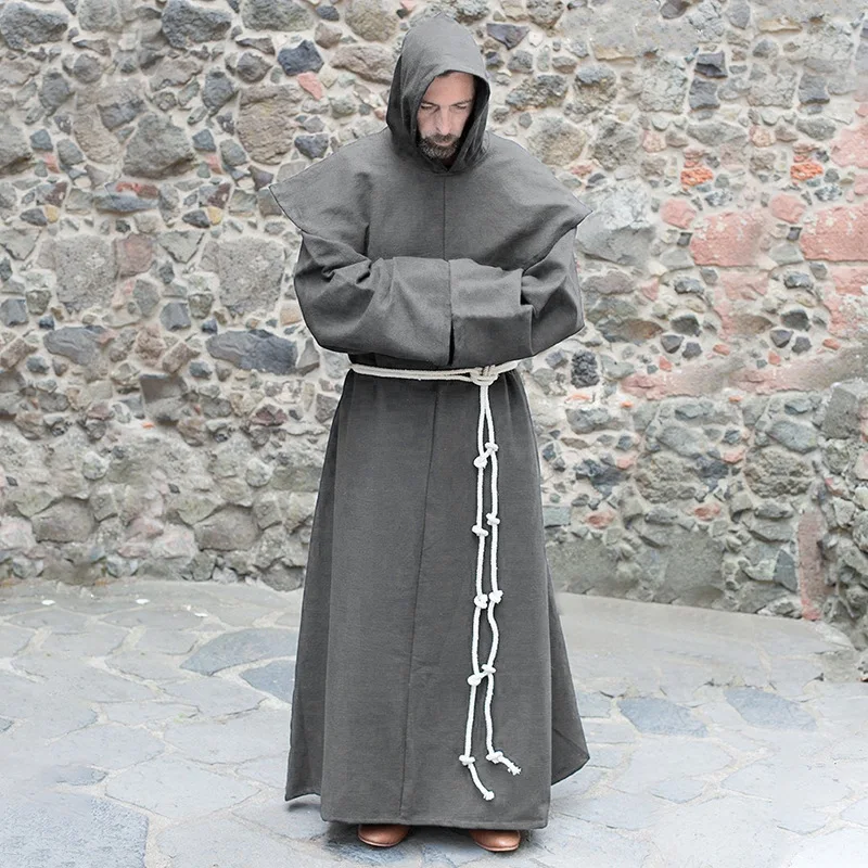 Мужской костюм для косплея, средневековый винтажный костюм монаха, священника, с капюшоном, на Хэллоуин