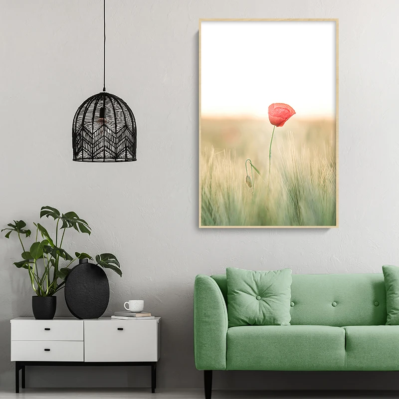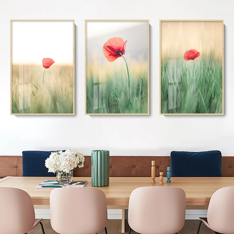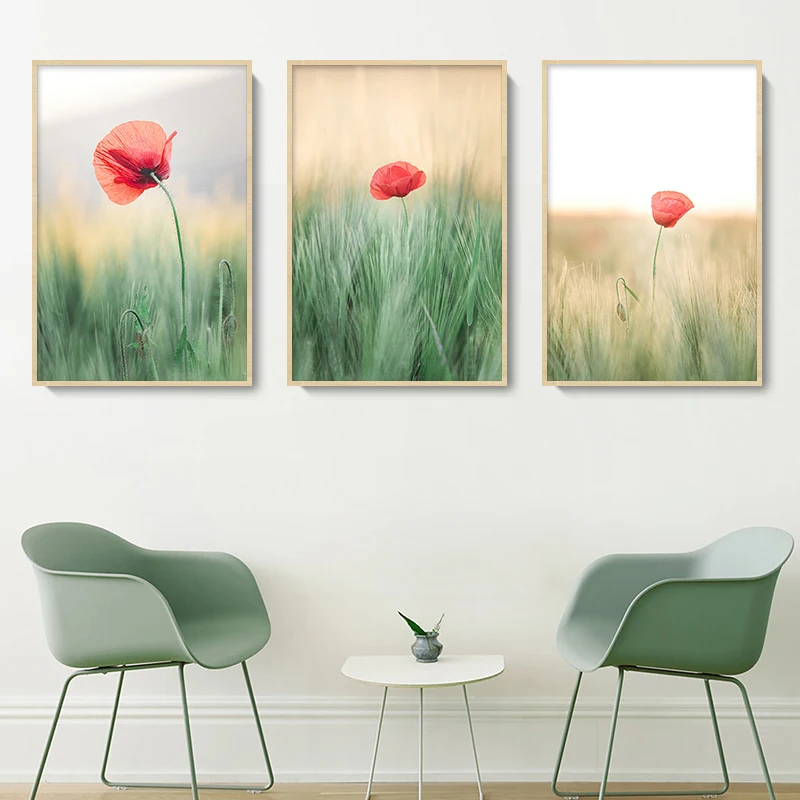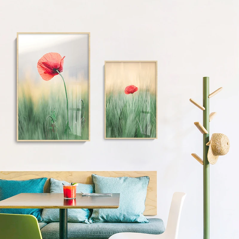 Настенная картина с красными цветами, искусство на холсте, трава, картина, декор для гостиной в скандинавском стиле