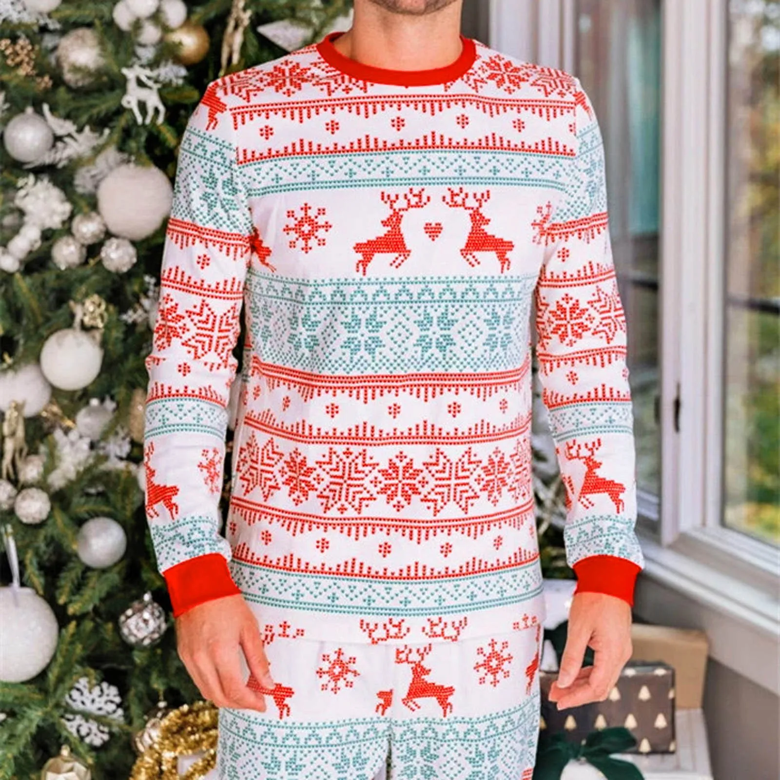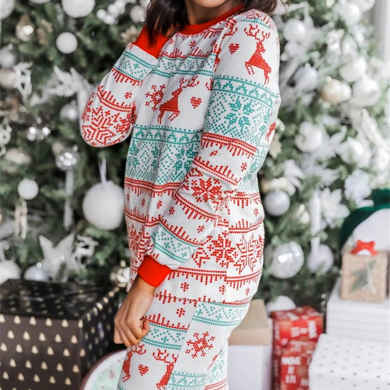 Теплый рождественский комплект для родителей и детей; Домашняя одежда с принтом; Пижама; Комплект для мамы из двух предметов