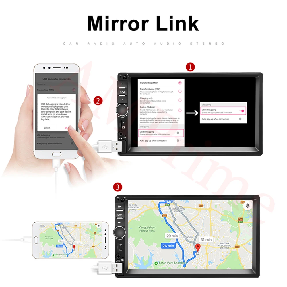 Особенности:● HD 7 ''авто радио mp5 плеер● Обновленная двойная система зеркальной связи: IOS/Android зеркальной связиIOS one-way:IOS поддерживает мобильный телефон с односторонней проекцией на машинуAndroid двусторонний: Android поддерживает мобильный телефон двустороннее соединение● Встроенная gps-навигация: пользователи могут покупать напрямую из play store для автономной навигации. С подключением к Wi-Fi, Google Maps может использоваться идеально, вы можете пойти куда угодно и никогда не потеряться снова.● Встроенный WIFI: подключение к WIFI, и вы найдете новый мир, самый удобный-это онлайн-карта.● Камера заднего вида: необходимо выбрать камеру, автомобиль подключен к обратной передаче для автоматического переключения (требуется дополнительно)● Управление рулевым колесом: через него вы можете управлять функциями, которые вам нужны, с помощью рулевого колеса, более удобно● Встроенный Bluetooth с A2DP/Hands Free/Телефонная книга: Bluetooth hands-free Звонки, Bluetooth музыкальный плеер, Автозагрузка телефонных книг● Запись вождения: вы можете выбрать регистратор, и автомобиль имеет воспроизведение, доказательства могут быть сохранены● Поддержка файлового менеджера: поддержка загрузки, установки и удаления более тысячи приложений android● Поддержка нескольких языков: поддержка языков, до 40 национальных языков● Вы можете наслаждаться музыкой с вашего мобильного телефона без каких-либо кабелей, а также поддержка USB connetion.● Fm-радио: онлайн-музыка вы можете передавать музыку на автомобильную стереосистему FM, чтобы наслаждаться оригинальным стереозвуком автомобиля, с 18 предустановленными станциями● Настройка времени: вы можете использовать сеть или GPS, чтобы автоматически открыть дату и время, или вы можете настроить его вручную.Характеристики:Система: AndroidНабор микросхем: 8227L-DEMOРазмер экрана: 7''Память: 1 Гб + 16 ГБ/2 ГБ + 16 Гб (опционально)Разрешение экрана: 1024*600Зеркальная ссылка: Android/IOSРадиочип: NXP6851Выходная мощность: 4*45 ВтРабочая температура:-40 ℃-80 ℃Функция управления рулем: ПоддержкаВерсия Bluetooth: 4,0Чип усилителя мощности: AC7315Радио диапазон: FMВидеовыход: ПоддержкаКарты: Встроенные автономные картыWIFI: поддержкаUSB: USB интерфейсИзменение логотипа автомобиля: ПоддержкаФормат аудио: APE/FLAC/WAV/MP3/WMA и т. Д.Формат видео: MKV/RMVB/AVI/MP4/MDV и т. Д.Формат изображения: PNG/JPEG/JPG/GIF/WBMP/BNP и т. Д.Заводское ключевое слово: 8888Язык: китайский/английский/французский/итальянский/Корейский/японский/арабский/испанский/португальский/русский/Турецкий/Вьетнамский/Иврит/Польский/немецкийПосылка включает в себя:1 х Автомобильный плеер1 х Кабель питания1 x Антенна GPS1 x вход камеры1 х RCA вход и выходМеталлический каркас-2 шт.4 x винтРуководство по эксплуатации-1 шт.