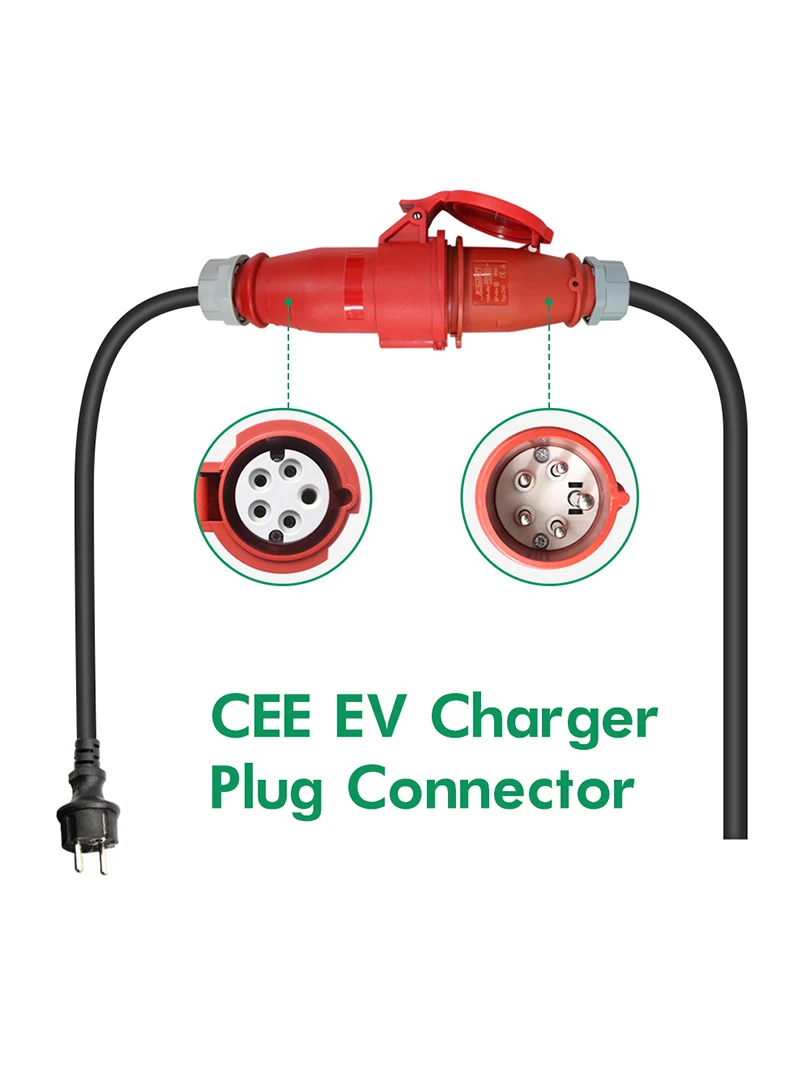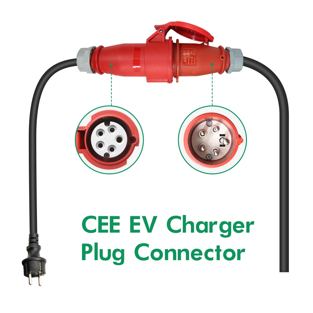 EV зарядное устройство тип 2 16 А 3 фазы 11 кВт адаптер CEE красный...