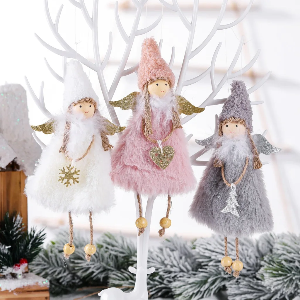 Рождественские куклы-ангелы, розовые, белые плюшевые подвесные укра...