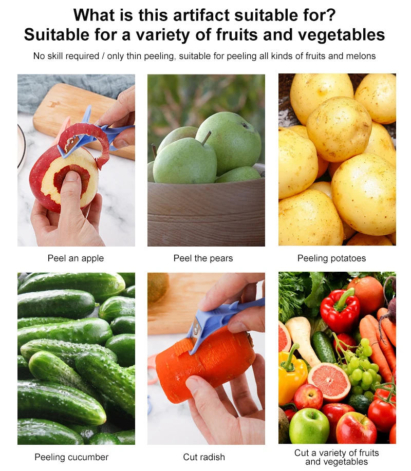 4. Креативная режущая головка, креативный метод резки, чтобы очистить фрукты тонким, но не легко сломать.