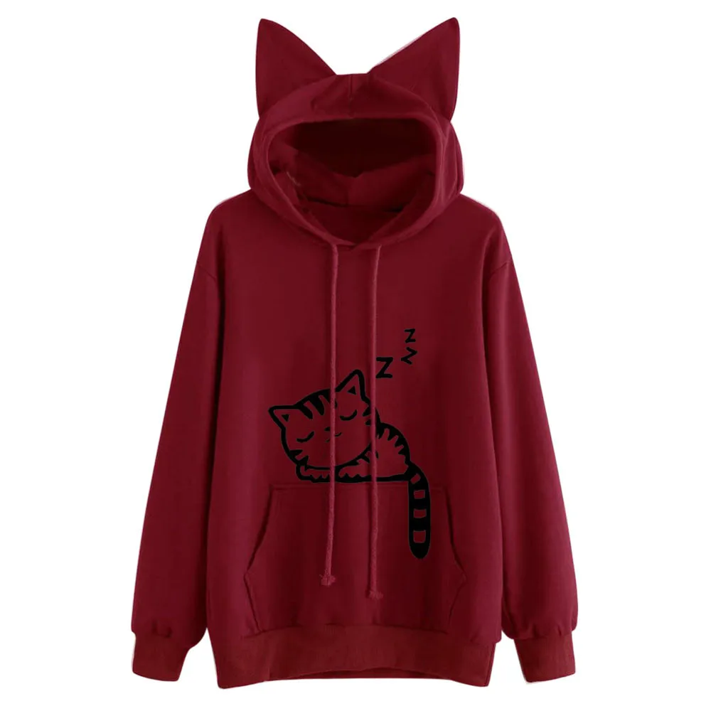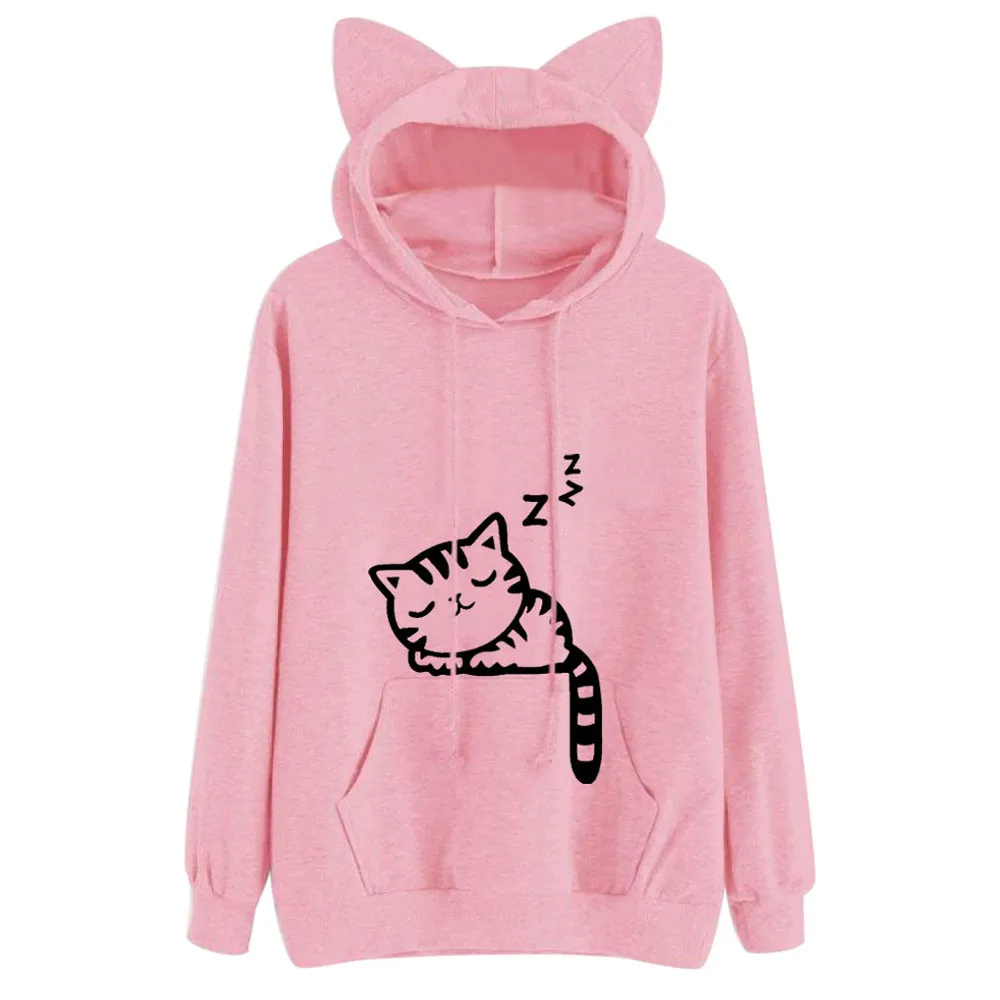 Женские толстовки, свитшот, милые зимние толстовки в стиле Харадзюку с принтом кота, толстовки с длинным рукавом, женские толстовки с капюшоном #1