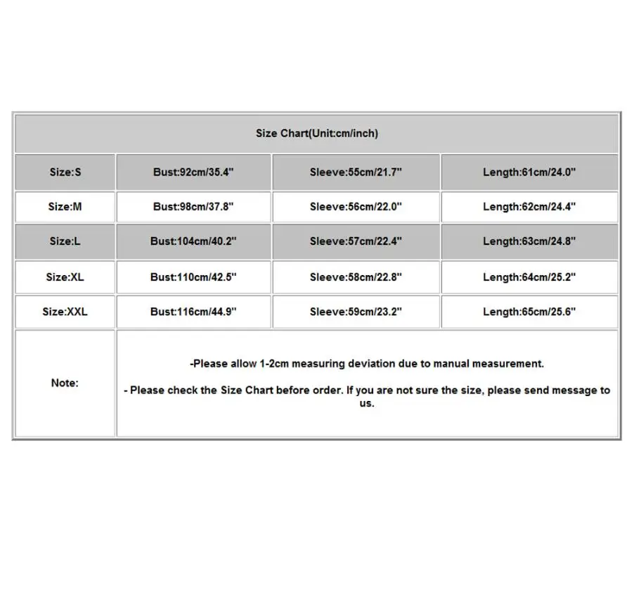 - Пожалуйста, проверьтеРазмеры ТаблицаДо Заказ. Если вы не уверены в размере, пожалуйста, отправьте сообщение Нас.