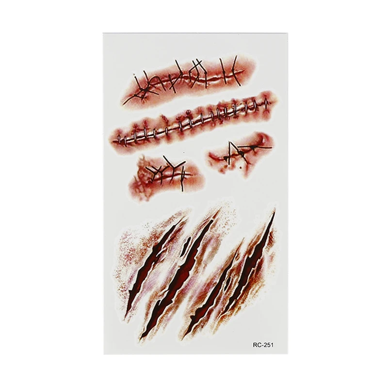 Тату-наклейки на Хэллоуин с ужасными ранами, реалистичные Временные татуировки, тату-наклейки для макияжа тела, стойкие водостойкие, безвредные для кожи