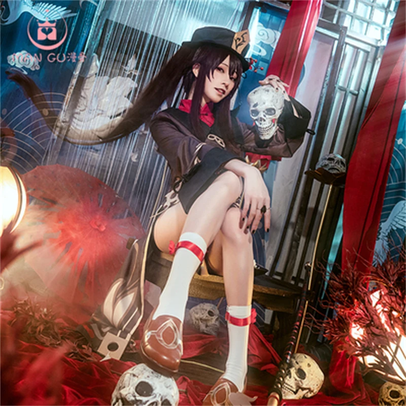 Костюм Ху Тао из игры геншин, косплей, парик, шляпа, пальто, аксессуары, реквизит, маскарадный костюм на Хэллоуин, женский подарок