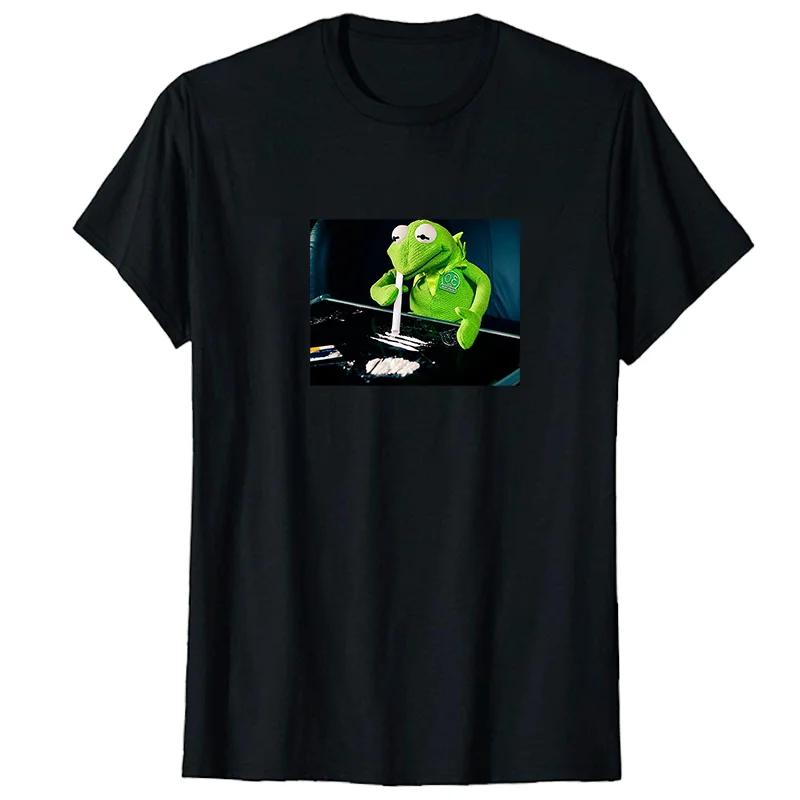 Забавная хипстерская Футболка с принтом лягушки, черно-белая футболка унисекс, модные футболки с графическим принтом, уличная одежда в стиле Харадзюку, мужская одежда