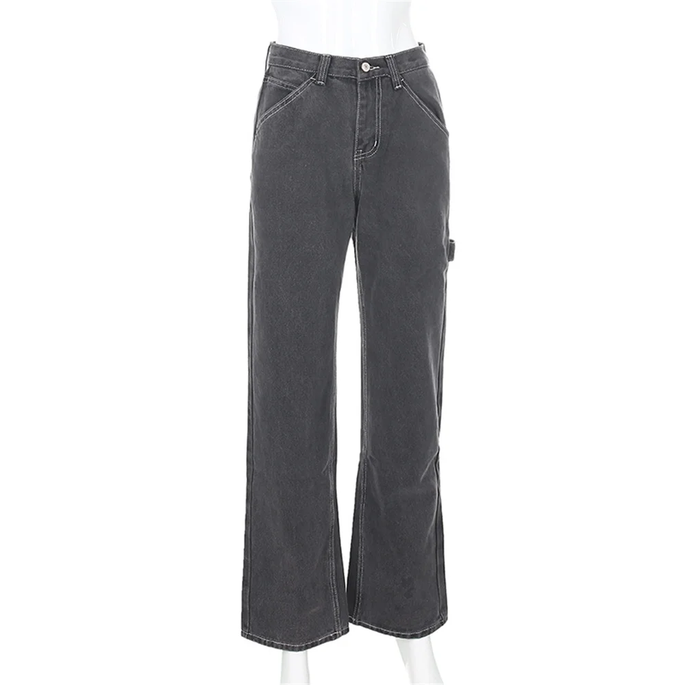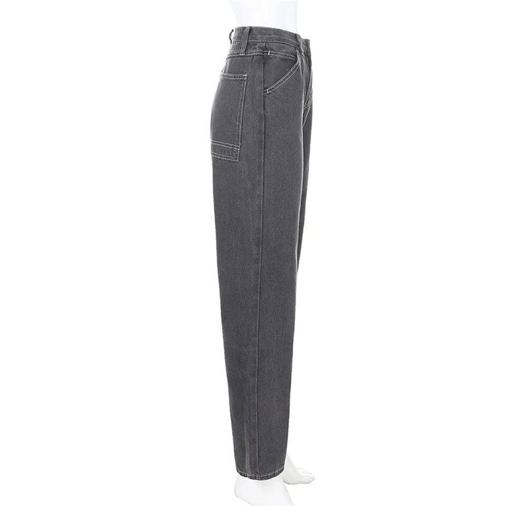 Женские джинсы, дымчато-серые мешковатые джинсы в стиле ретро, с вы...