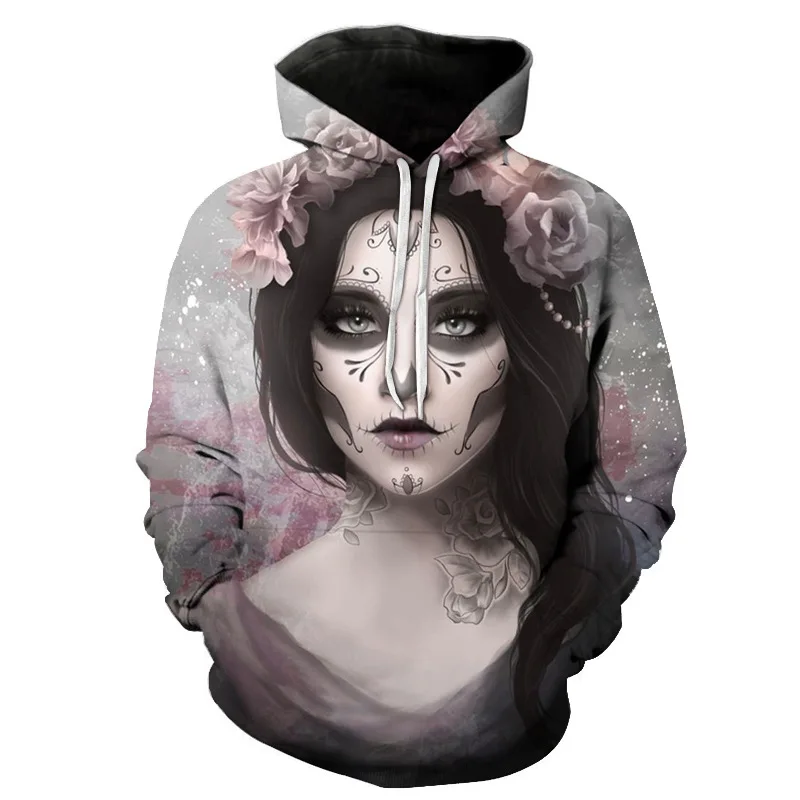Толстовка с капюшоном для мужчин и женщин, толстовка большого размера с 3D-принтом ведьмы и черепа, 2021