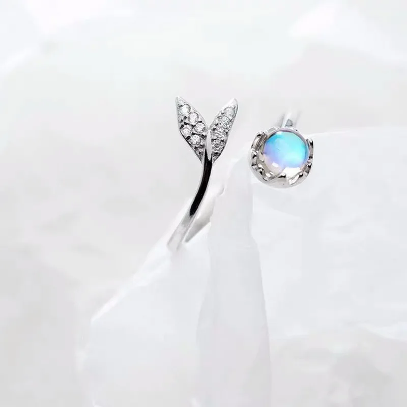 Милое одеяло хвост русалки из лунного камня Открытое кольцо личност...