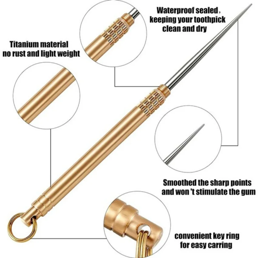 Зубочистка из титанового сплава, интегрированный инструмент для чистки зубов, портативный металлический зубочистка, инструмент для кемпинга на открытом воздухе (с кольцом для ключей)