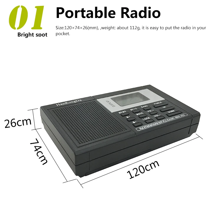 Мини-fm-радио использует технологию обработки цифровых сигналов, используя программное обеспечение для достижения беспроводного радио всех функций,Получение более стабильного и очень простого в эксплуатации. Изделие с ушком для наушников и вытяжным шнуром.