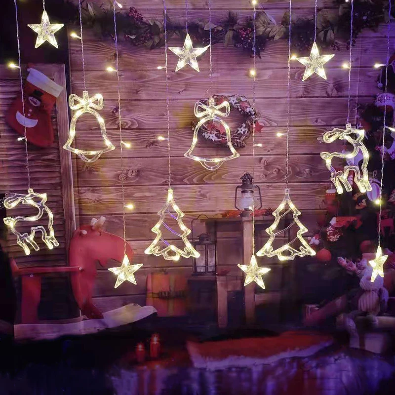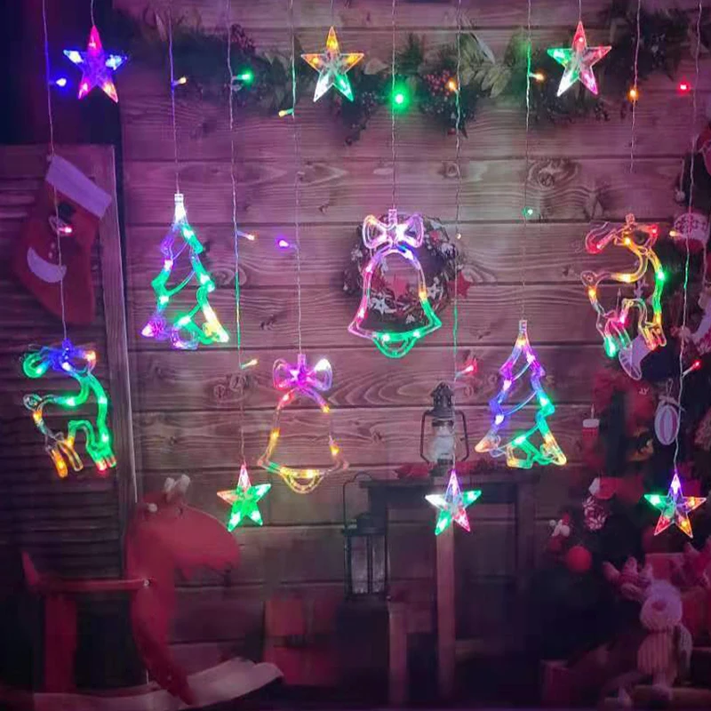 Рождественское украшение олень с колокольчиками, гирлянда-занавес, светодиодная гирлянда, сказосветильник гирлянда для улицы, для дома, свадьбы, вечеринки
