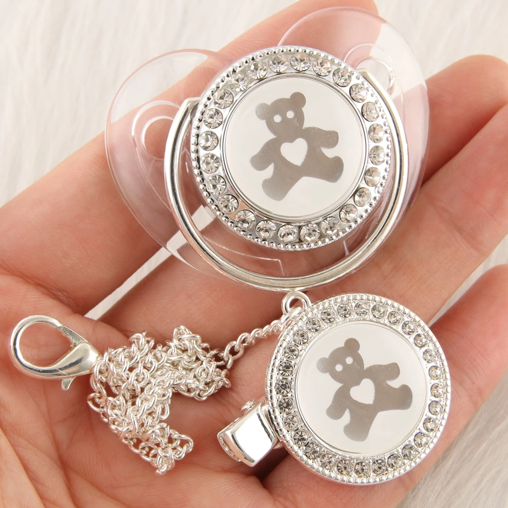 Персонализированная Серебряная Соска с блестками и зажимом, роскошн...
