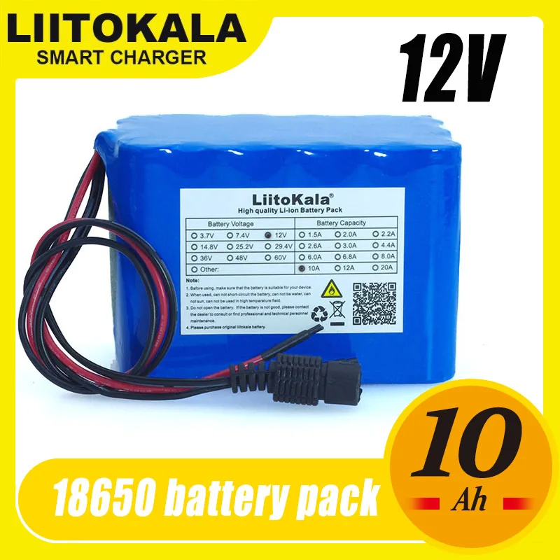 Аккумуляторная батарея LiitoKala, литиевая аккумуляторная батарея большой емкости 12 в 10 Ач 100%, емкость 12 В 18650 мАч с BMS, новинка 10000