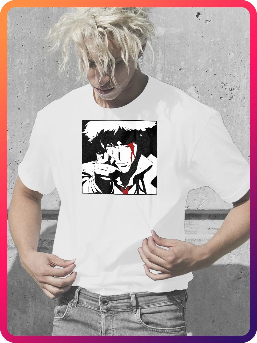 Мужская футболка Белая ковбой бибоп (аниме, anime, Cowboy Bebop, Фэй Валентайн, Trigun) - 1810