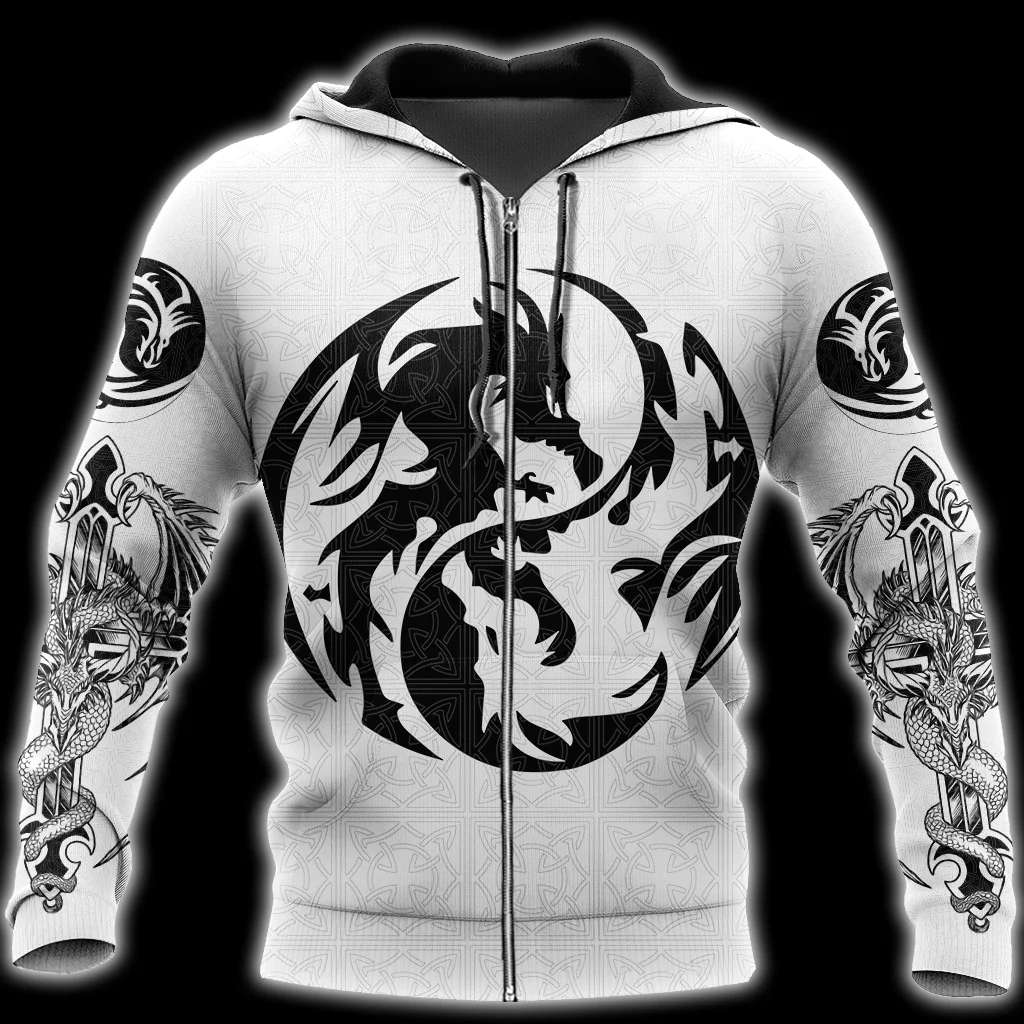 Мужские толстовки с 3D-принтом дракона, черный и белый пуловер в стиле Харадзюку, свитшоты с капюшоном в стиле унисекс, куртка в стиле хип-хоп для женщин, новая уличная одежда