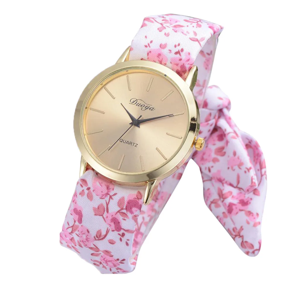 Женские наручные часы Duoya, вечерние повседневные часы с цветочным принтом и бантом