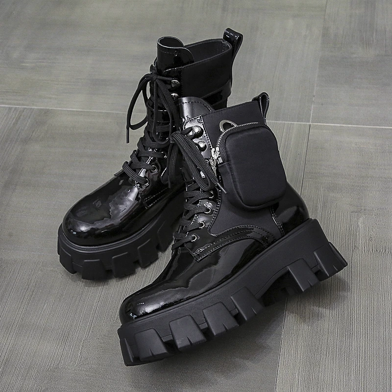 Ботинки женские из лакированной кожи, на платформе 6 см, с сумкой и пряжкой, 2021