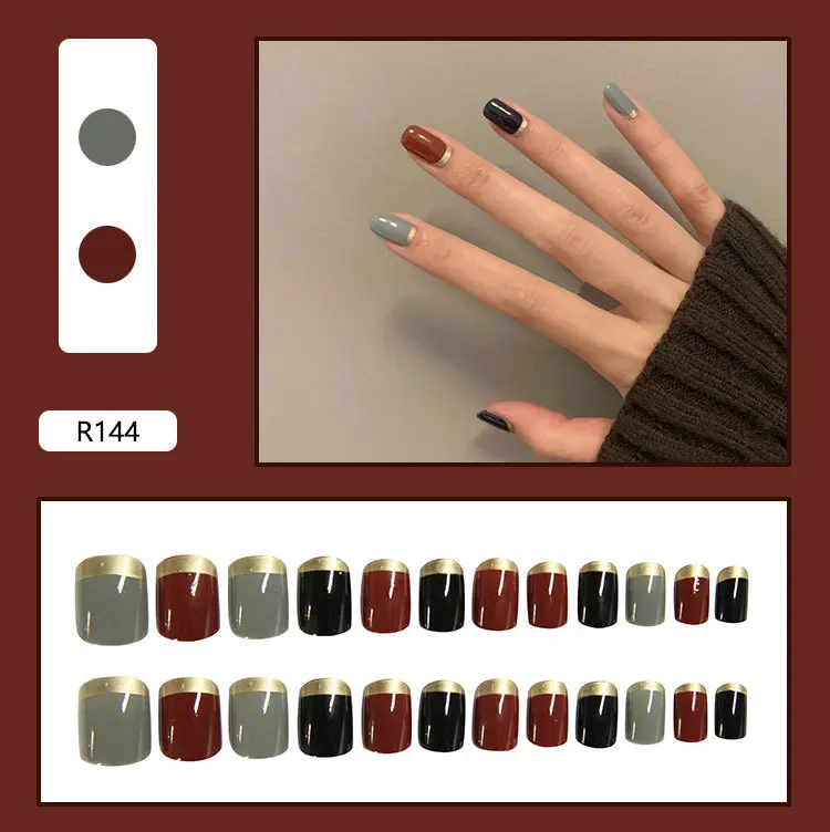 Накладные ногти, 24 шт., съемные, клеевые, для модного маникюра, на...