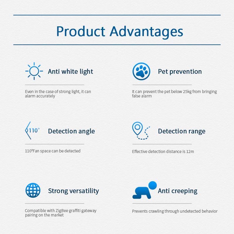 Ультра-широкое обнаружение с первого взгляда эффективное Обнаружение 110 ° широкий угол, может быть обнаружено в 12 метрах пространства спереди