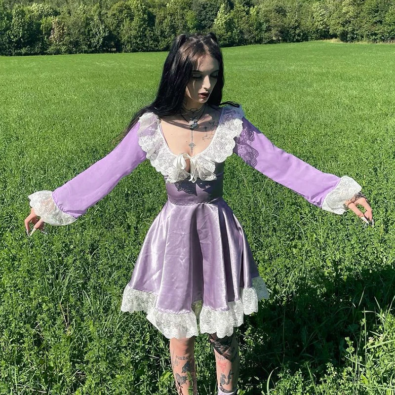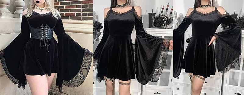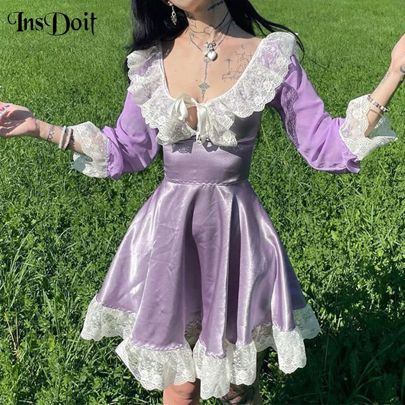 Женское винтажное кружевное платье InsDoit, черное ТРАПЕЦИЕВИДНОЕ ПЛАТЬЕ в готическом стиле, со шнуровкой, в стиле Харадзюку, для клувечерние, 2019