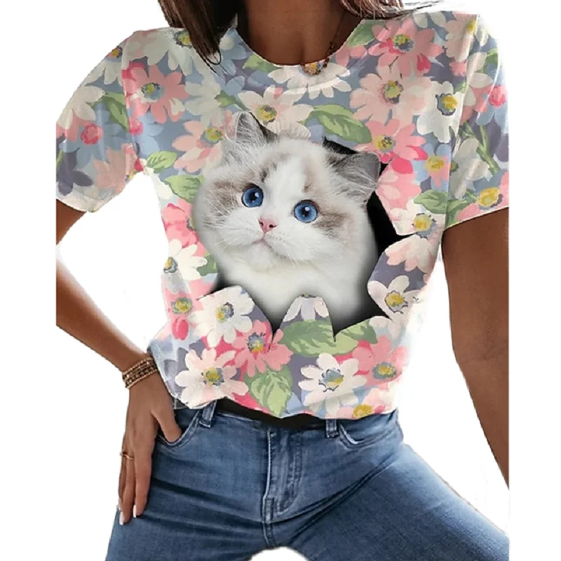 Футболка женская с 3D-принтом лесной кошки, забавная Повседневная модная дышащая впитывающая Пот футболка с коротким рукавом в ретро стиле